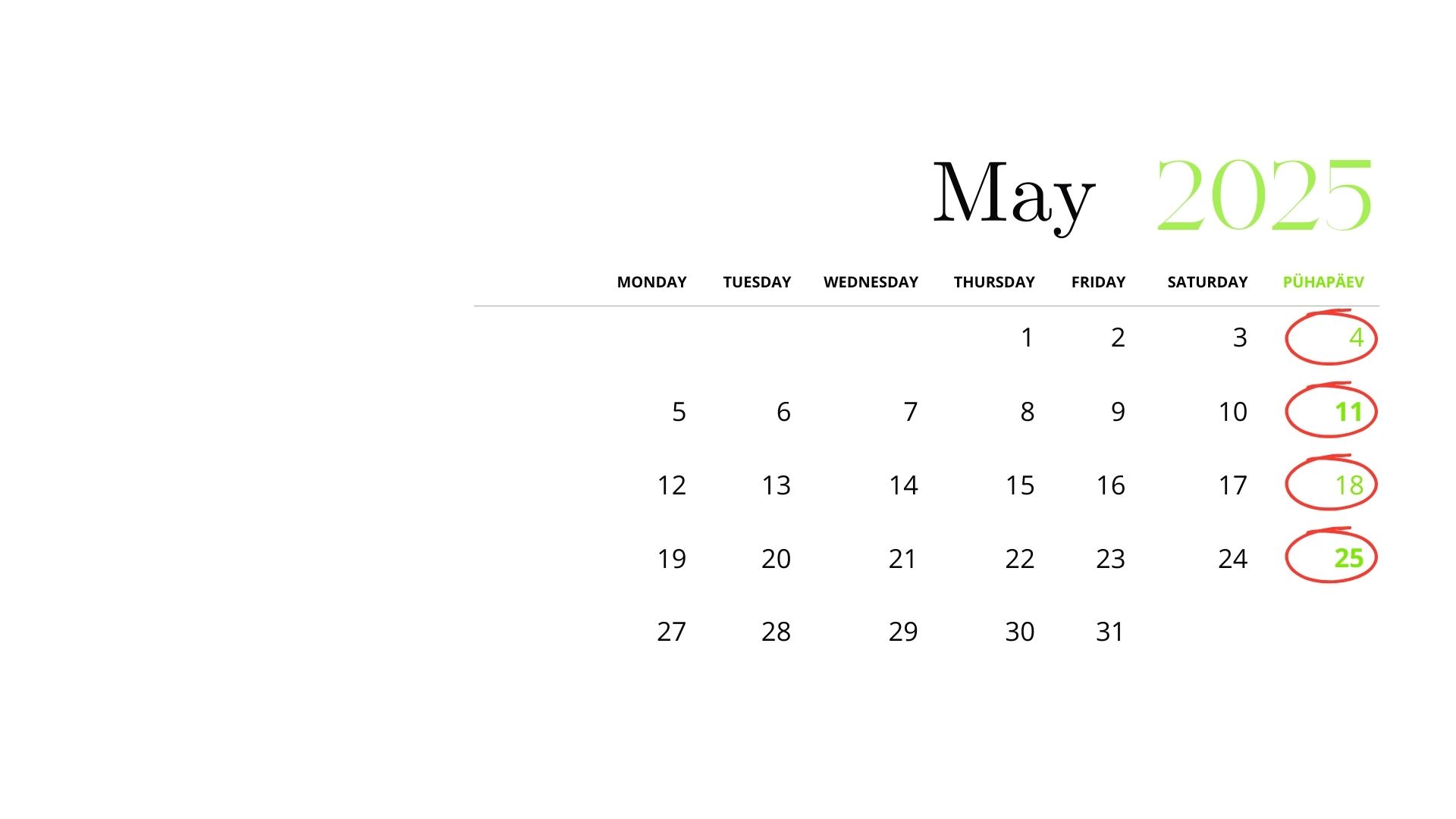 On Sundays we deliver free of charge in the districts: Harku vald, Tallinn, Viimsi, Muuga, Laulasmaa, Kloogaranna, Saku, Saue, Peetri, Laagri, Kiili, Rae, Keila, Maardu.